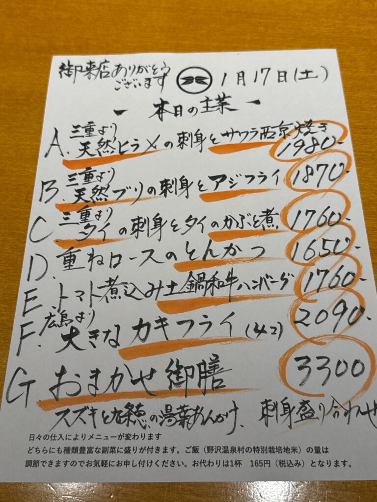 1月17日(土)お昼のメニュー