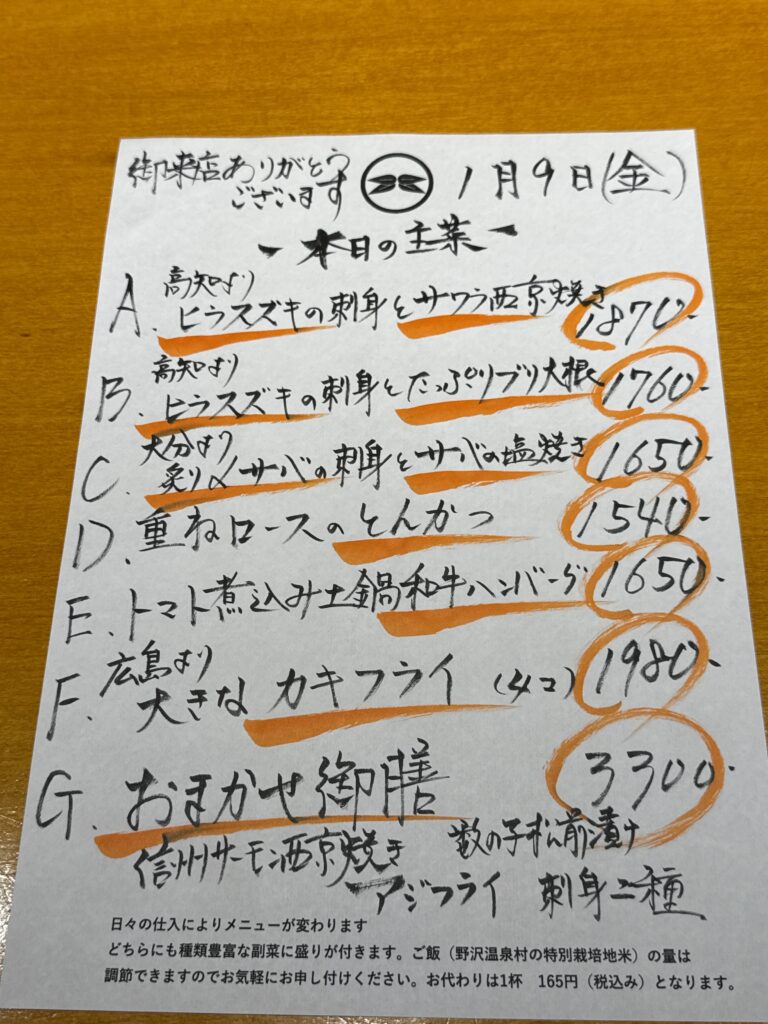 1月9日(金)お昼のメニュー