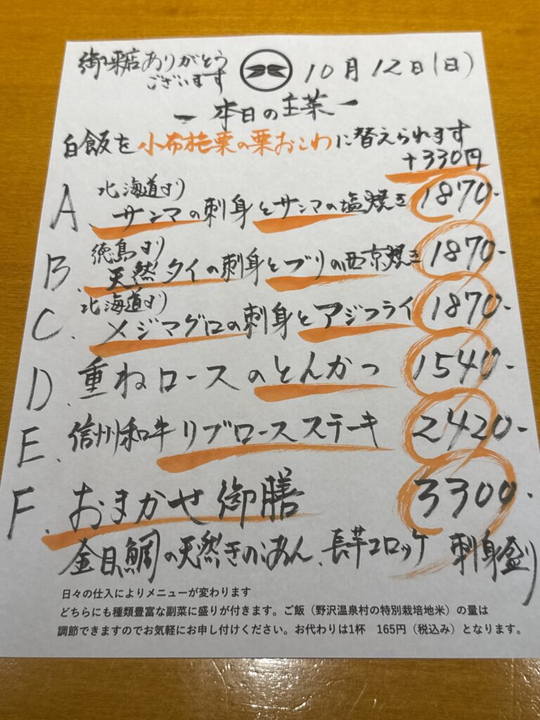 10月12日(日)お昼のメニュー