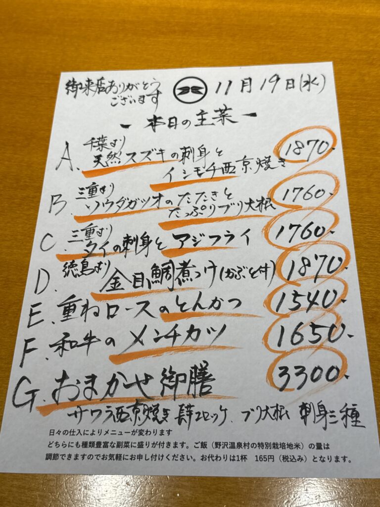 11月19日(水)お昼のメニュー