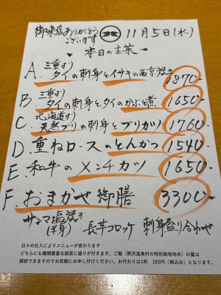 11月5日(水)お昼のメニュー