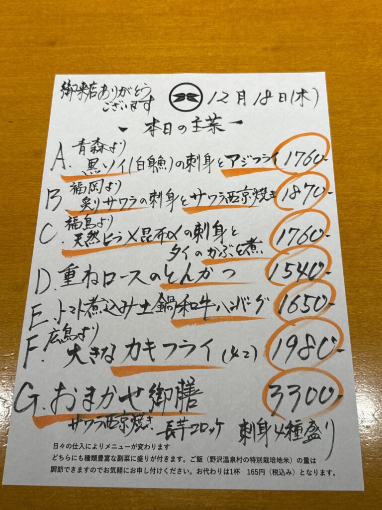 日替り昼メニュー