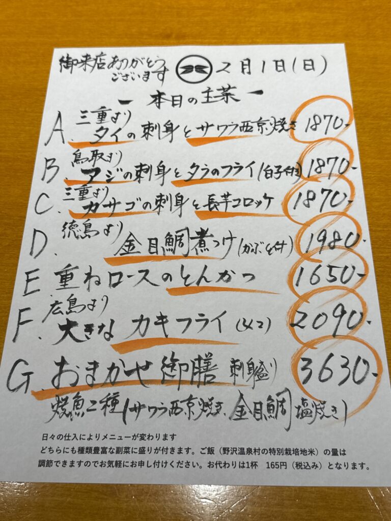 日替り昼メニュー