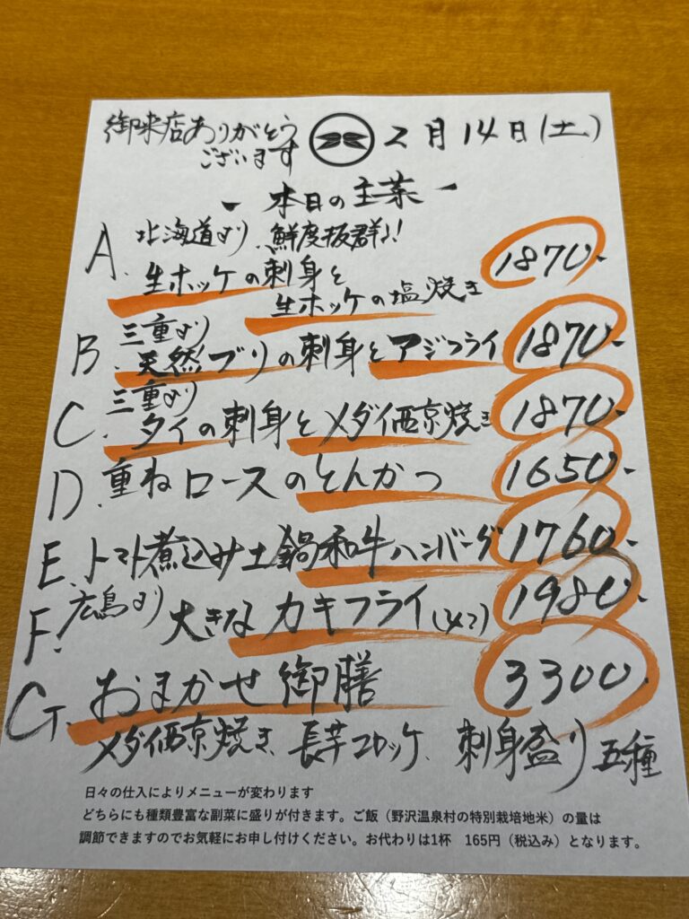 2月14日(土)お昼のメニュー