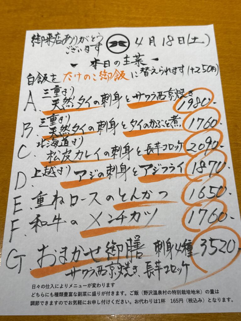 4月18日(土)お昼のメニュー
