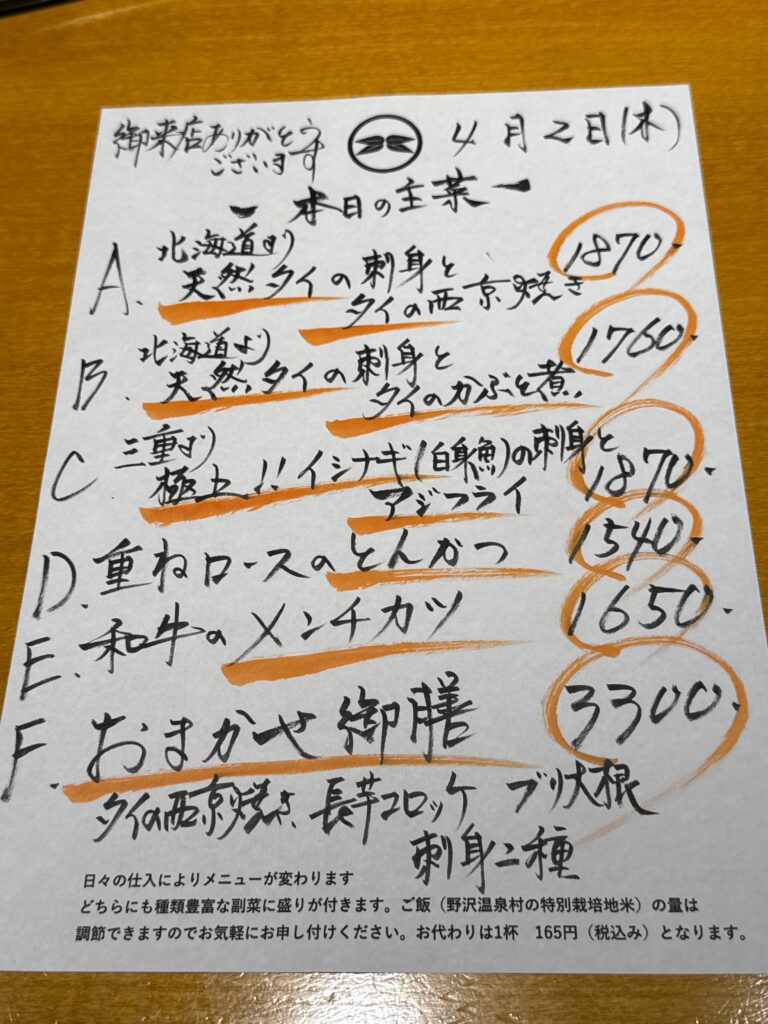 4月2日(木)お昼のメニュー
