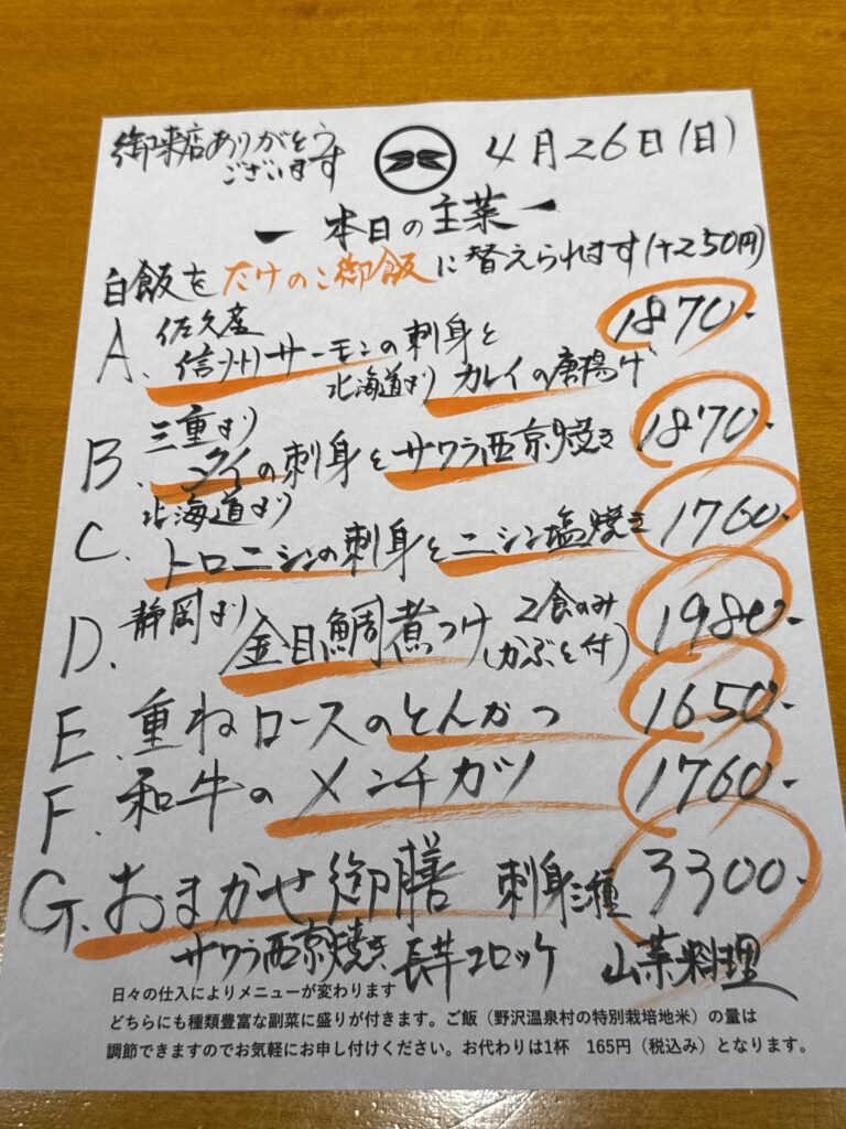 4月26日(日)お昼のメニュー