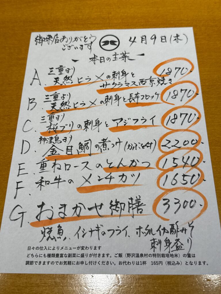 4月9日(木)お昼のメニュー
