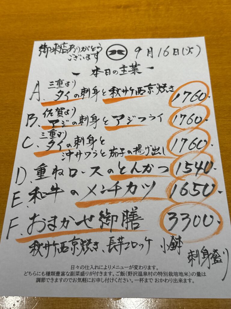 日替り昼メニュー