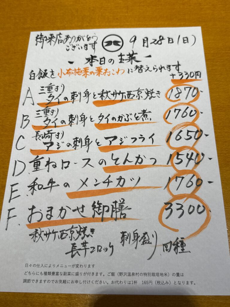 9月28日(日)お昼のメニュー